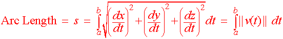 Arc Length Curvature For a parametrically defined curve we had the definition of arc length. Since vector valued functions are parametrically defined curves in disguise, we have the same definition. We have the added benefit of notation with vector valued functions in that the square root of the sum of the squares of the derivatives is just the magnitude of the velocity vector.